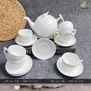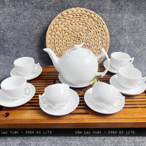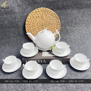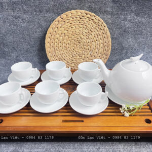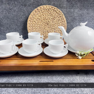 Bộ ấm trà Bưởi Cành trắng in logo công ty, quà tặng doanh nghiệp