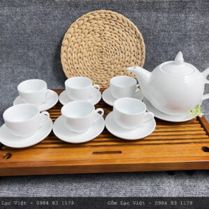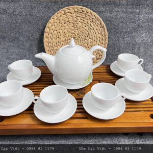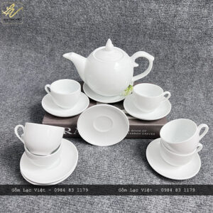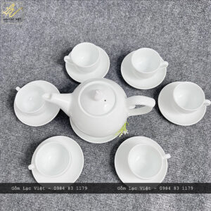 Bộ ấm trà Bưởi số 2 trắng in logo công ty, quà tặng doanh nghiệp