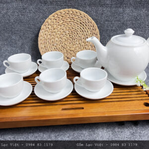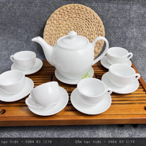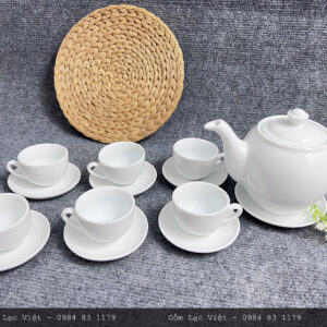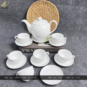 Bộ ấm trà Minh Long 1 trắng in logo công ty, quà tặng doanh nghiệp