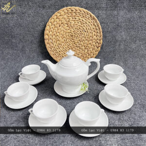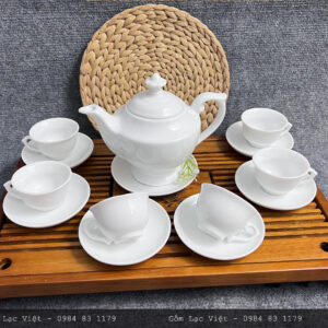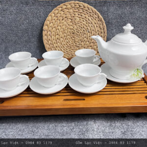 Bộ ấm trà Quốc Hội trắng in logo công ty, quà tặng doanh nghiệp