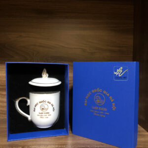 Cốc chóp lửa sứ trắng Bát Tràng in logo quà tặng doanh nghiệp