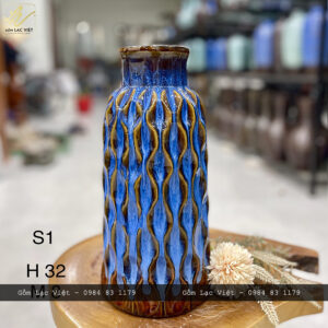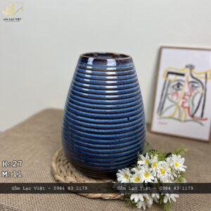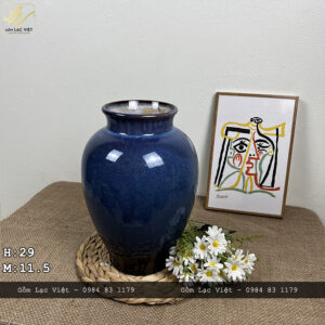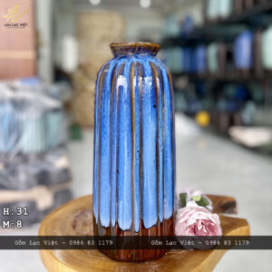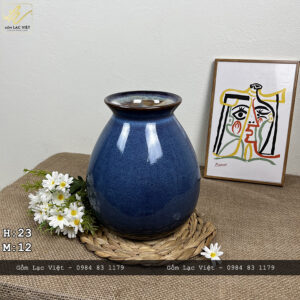 Lọ hoa men hỏa biến xanh cobal